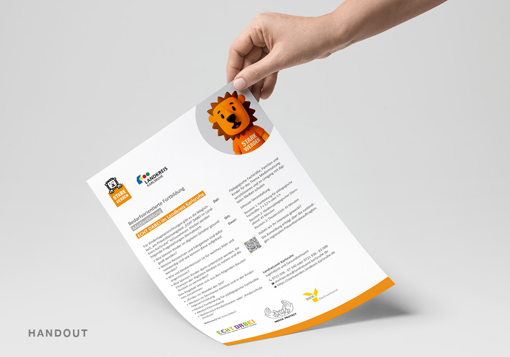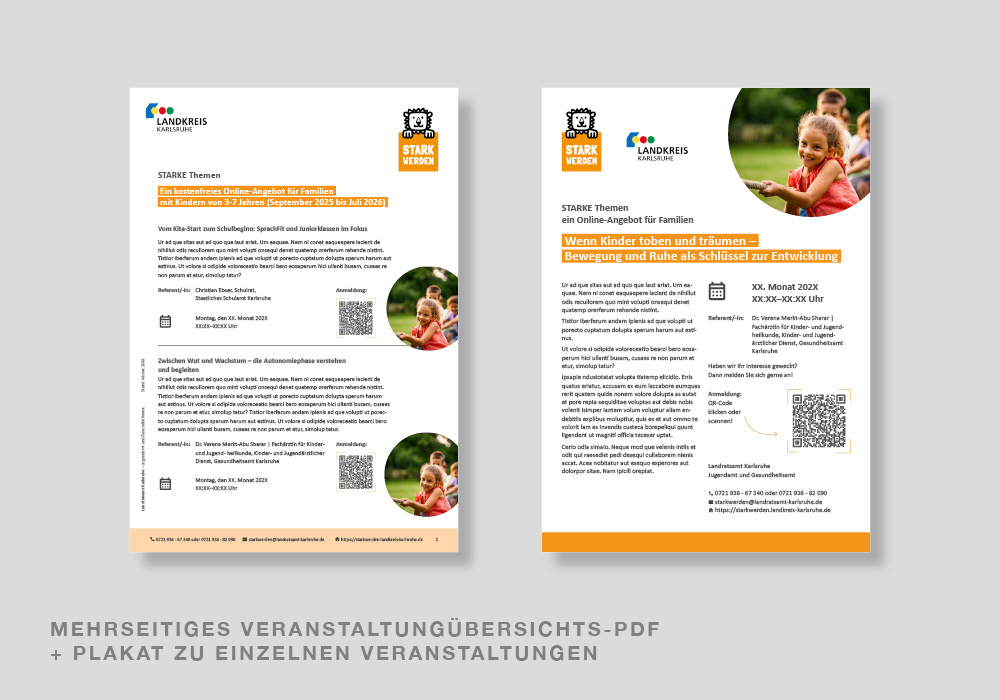Begleitend zu den digitalen Inhalten haben wir für das STARKwerden-Projekt verschiedene Print- und Editorial-Design-Materialien entwickelt, die sowohl für pädagogische Fachkräfte als auch für Eltern praxisnah und übersichtlich gestaltet sind. Die gesamte Gestaltung orientiert sich konsequent am Corporate Design der Marke STARKwerden und sorgt für ein einheitliches Erscheinungsbild über alle Materialien hinweg.