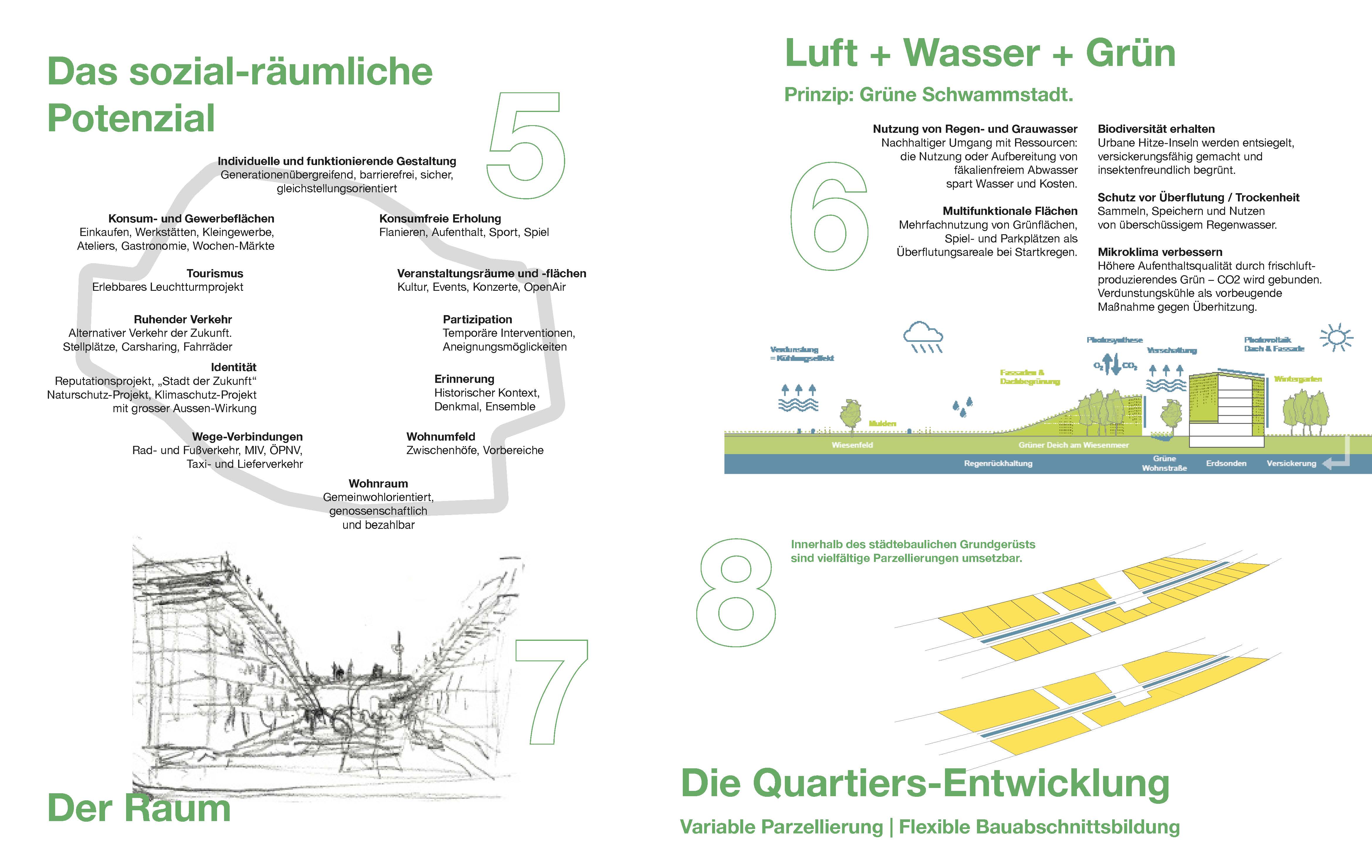 Der neu geschaffene „Kiez“ soll multifunktional sein und neben Wohnen auch Flächen für Kleingewerbe, Ateliers, Gastronomie, Kultur sowie soziale Infrastruktur wie Schulen und Kitas integrieren.